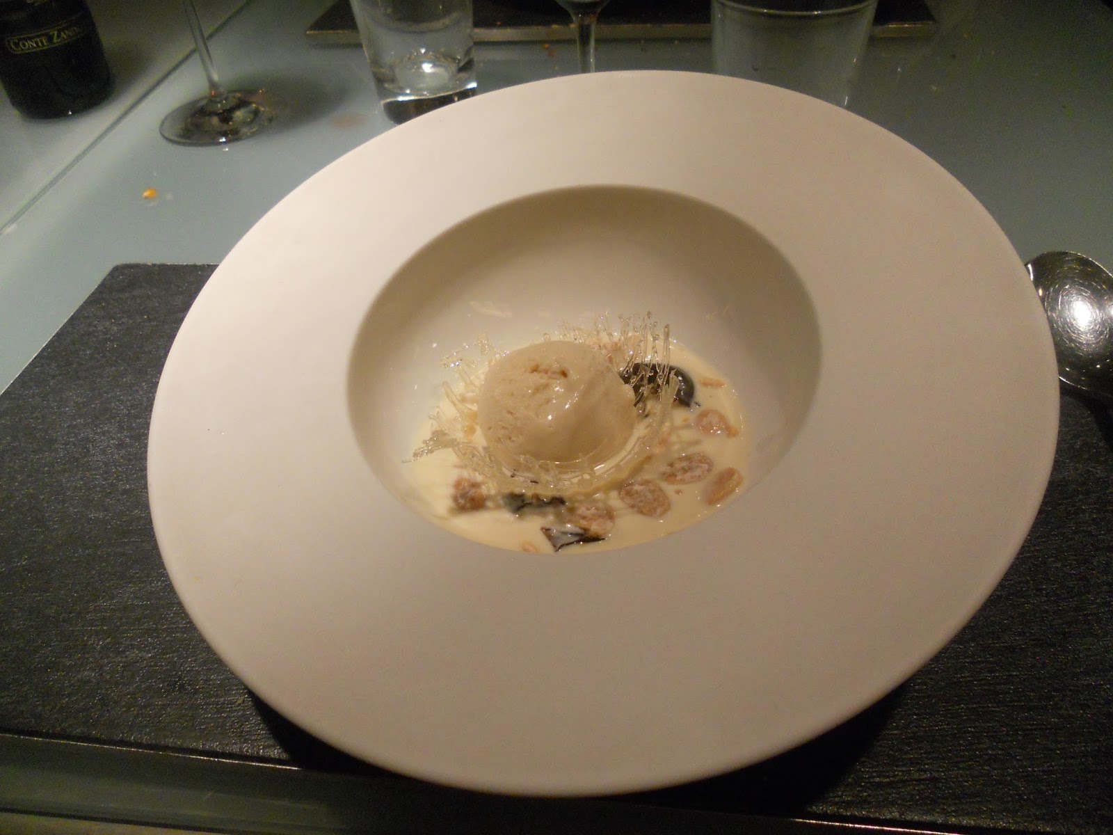 | Zuppetta di latte, gelatina di caffè, mandorle croccanti e gelato al Baileys |